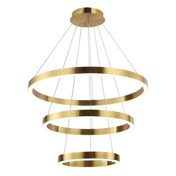 LED visilica Forma F2048-130V SG koja dolazi u boji zlata doprinosi modernom izgledu vaših prostorija.Jačina od 130W sa integrisanim LED svetlom omogućiče vam dugotrajno i elegantno osvetljenje.Takođe poseduje daljinski upravljač za odabir boje svetla u rasponu od 3000K do 6400K kao i dimovaje,sto omogućava da podesite jačinu svetla vašim potrebama.Zbog svojih dimenzija od 1200Ø400xØ600xØ800mm ova visilica je idealna za trpezarije, dnevne sobe, spavaće sobe.